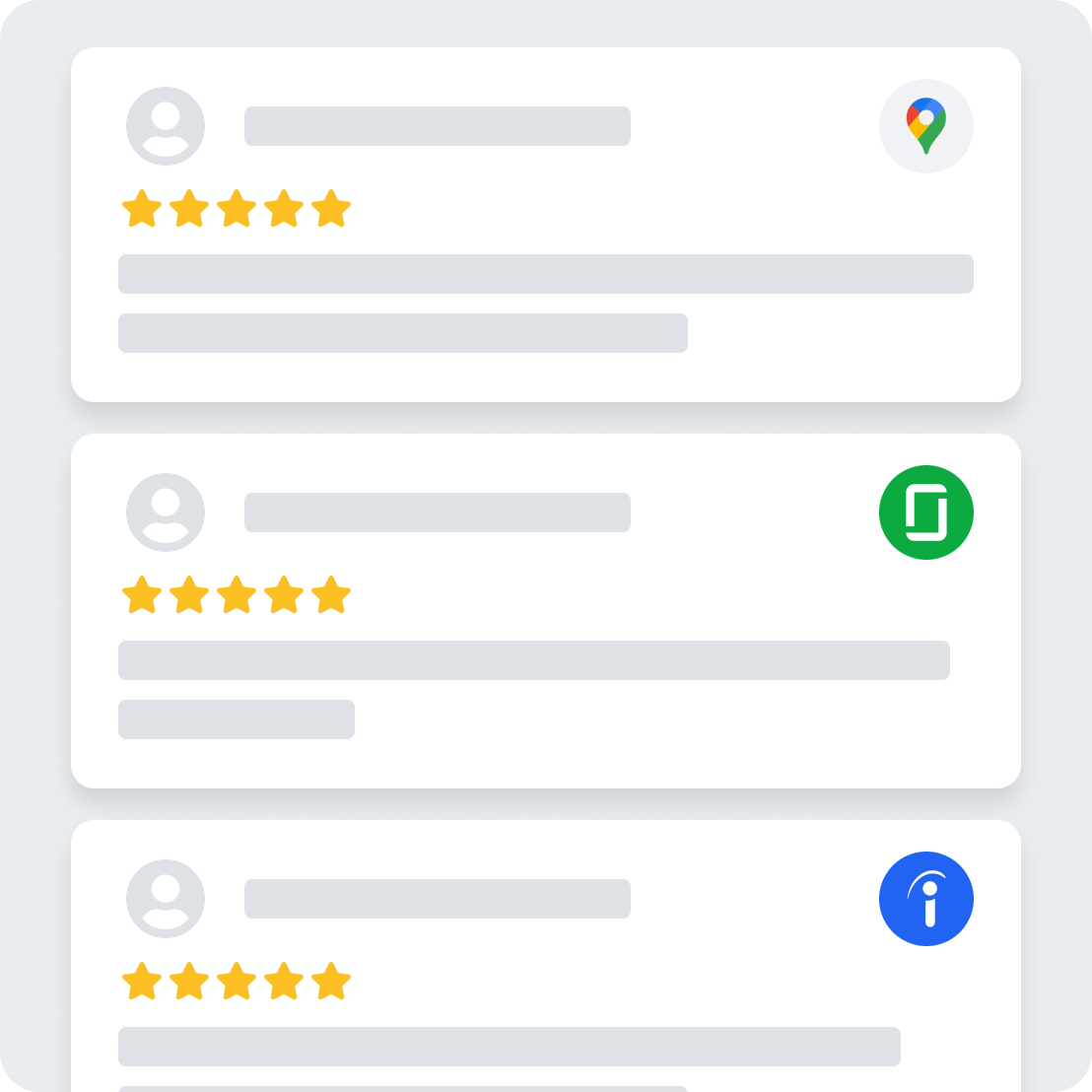AMPLIFY arbeitet mit Plattformen wie Google My Business, Google Maps, Tripadvisor, Glassdoor, Product Review und vielen anderen. Sie können auch angepasste Plattformen hinzufügen oder uns nach zusätzlichen Bewertungsplattformen fragen.