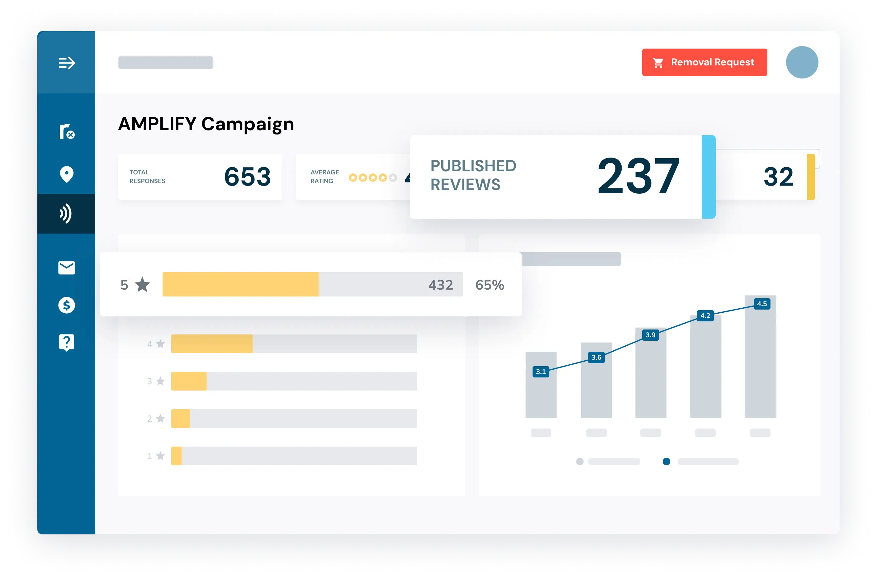 Mit AMPLIFY können Sie den Ruf Ihres Unternehmens verbessern und mehr Kunden gewinnen, während Sie Online-Bewertungen proaktiv verwalten.